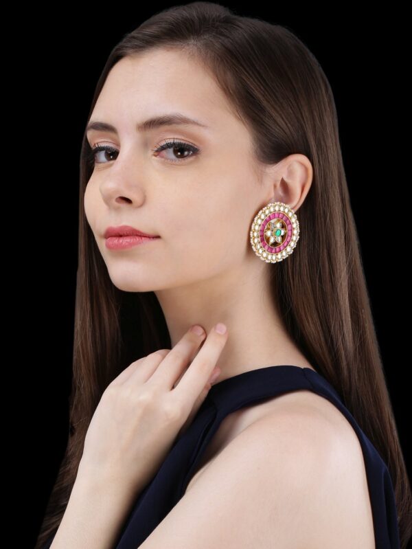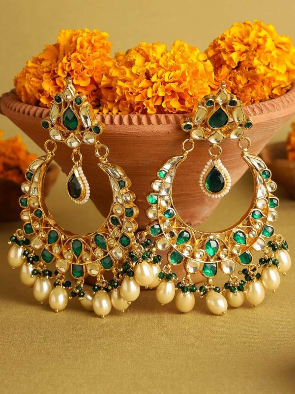 Gold finish kundan Kashmiri jhumkis