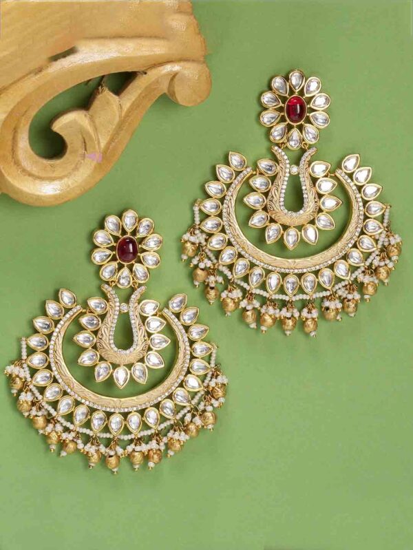 Traditional Micro Gold Polished Semi Precious Kundan & Pearl Earrings for Women. EAR742ON