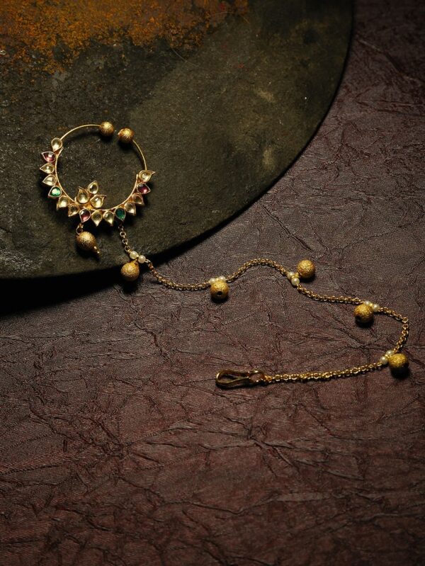 Micro Gold Polished Semi Precious Kundan & Pearls Nath/ Nose Pin/Nose Ring for Women. N456BON
