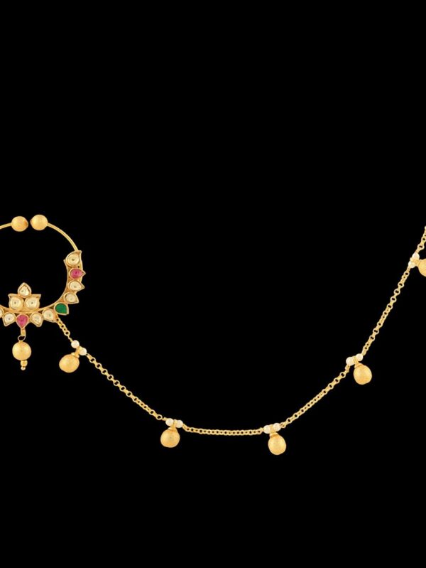 Micro Gold Polished Semi Precious Kundan & Pearls Nath/ Nose Pin/Nose Ring for Women. N459BON