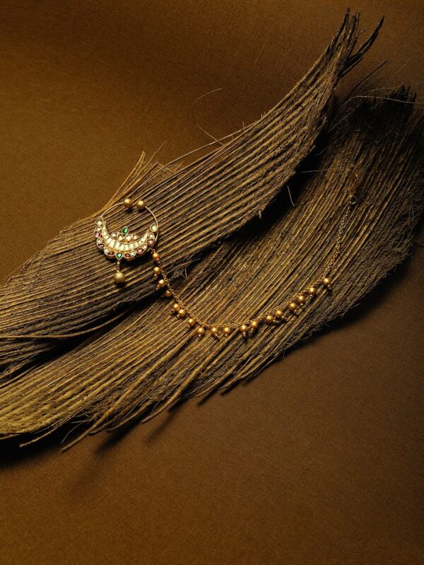 Micro Gold Polished Semi Precious Kundan & Pearls Nath/ Nose Pin/Nose Ring.