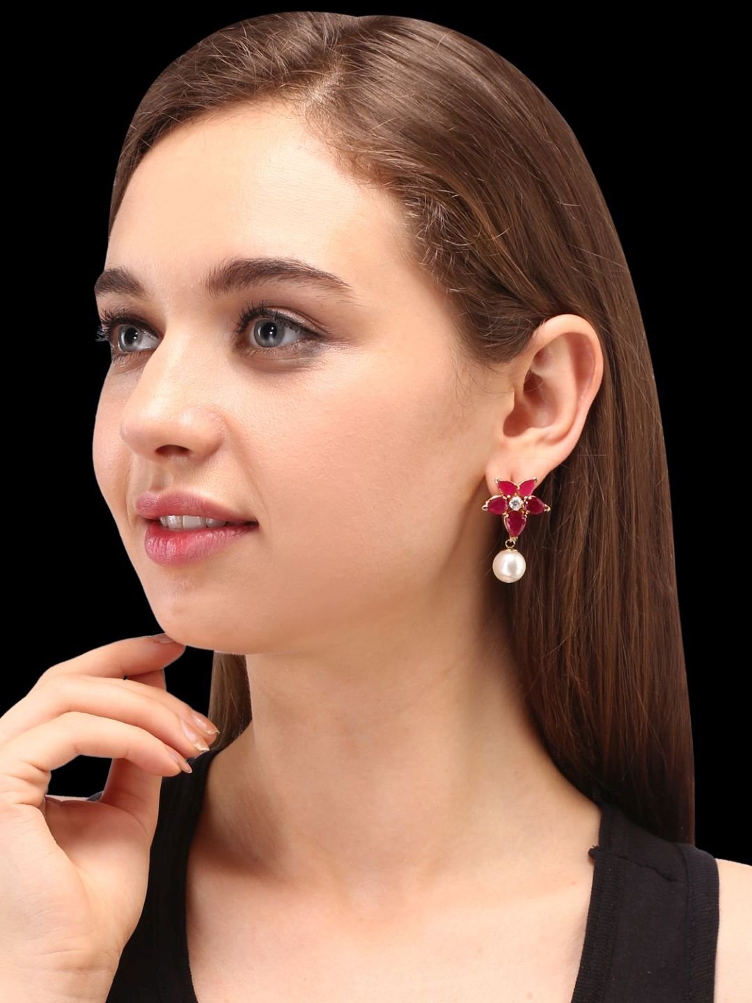 Look traditional yet contemporary in these pearl drop gold hoop earrings. These will go well with ethnic outfits.