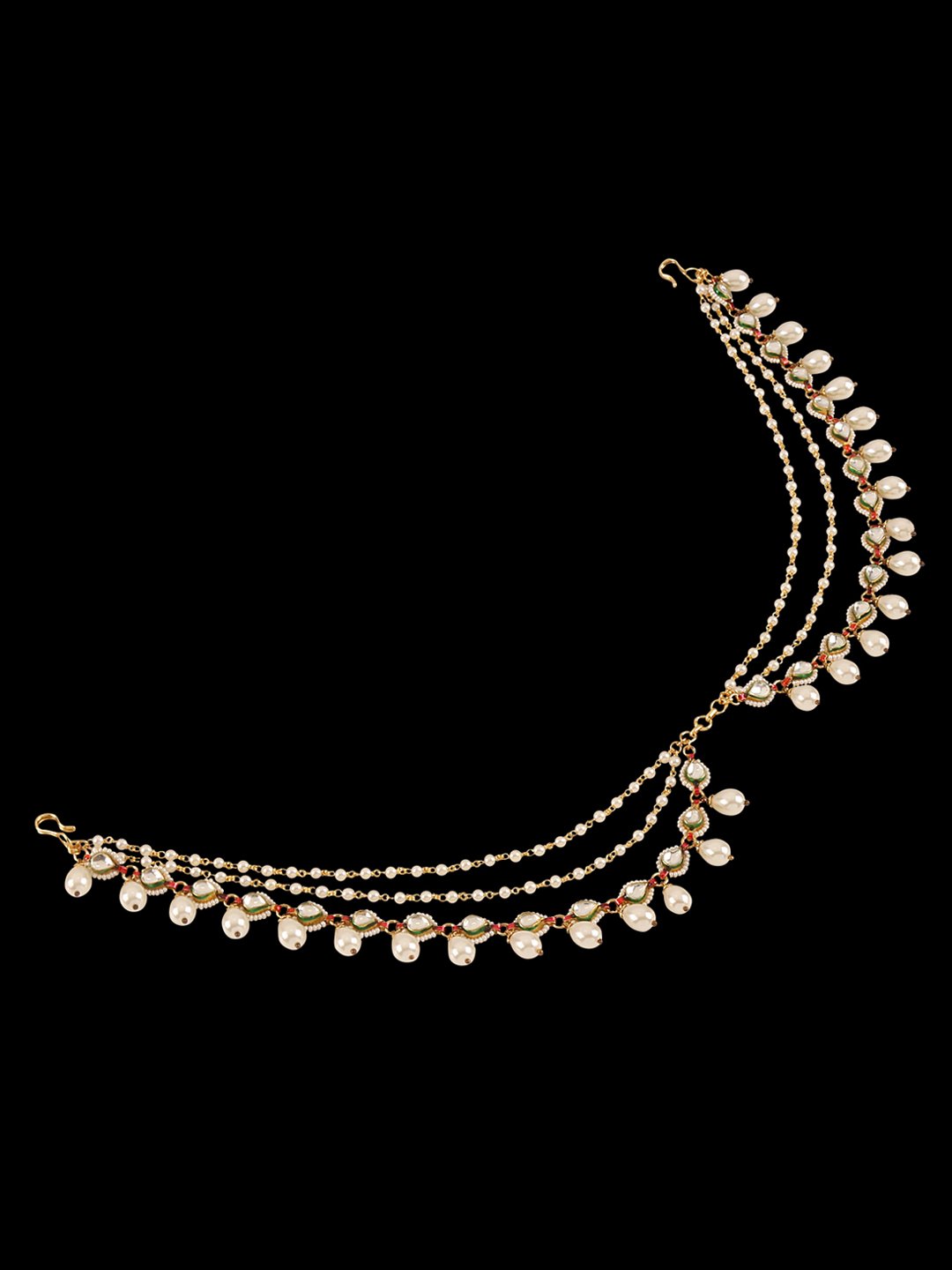 Traditional Micro Gold Polished Semi Precious Kundan & Pearl Damini/Maang Tikka/ Matha patti/ Tikka