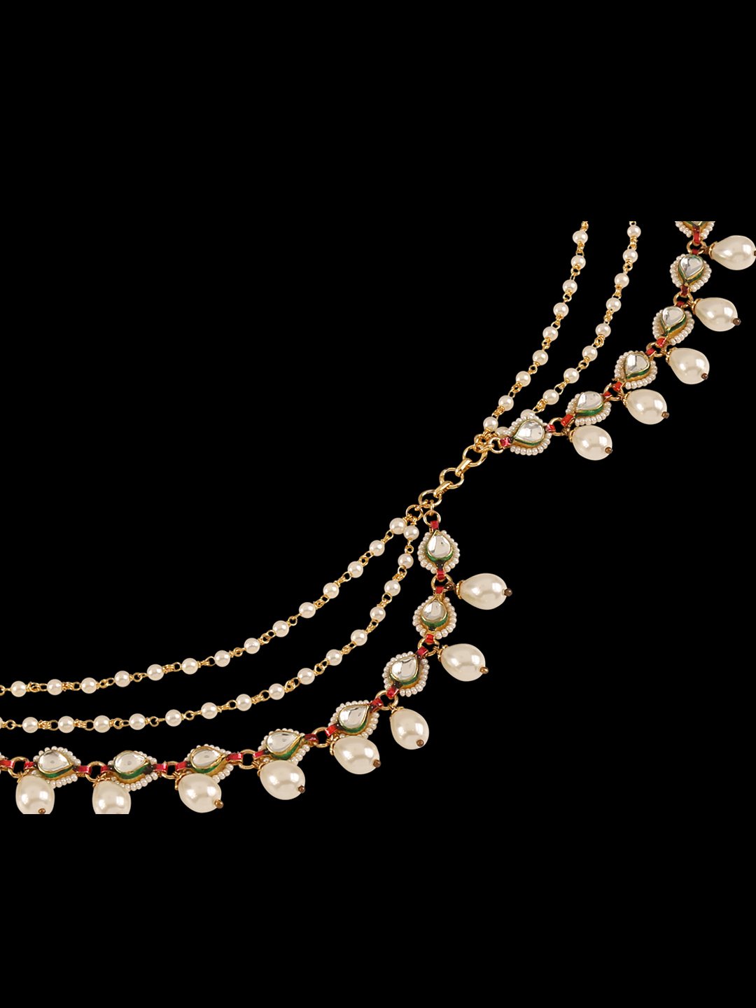 • This is carved beautifully & studded with White Coloured Semi Precious Kundan & Pearl.