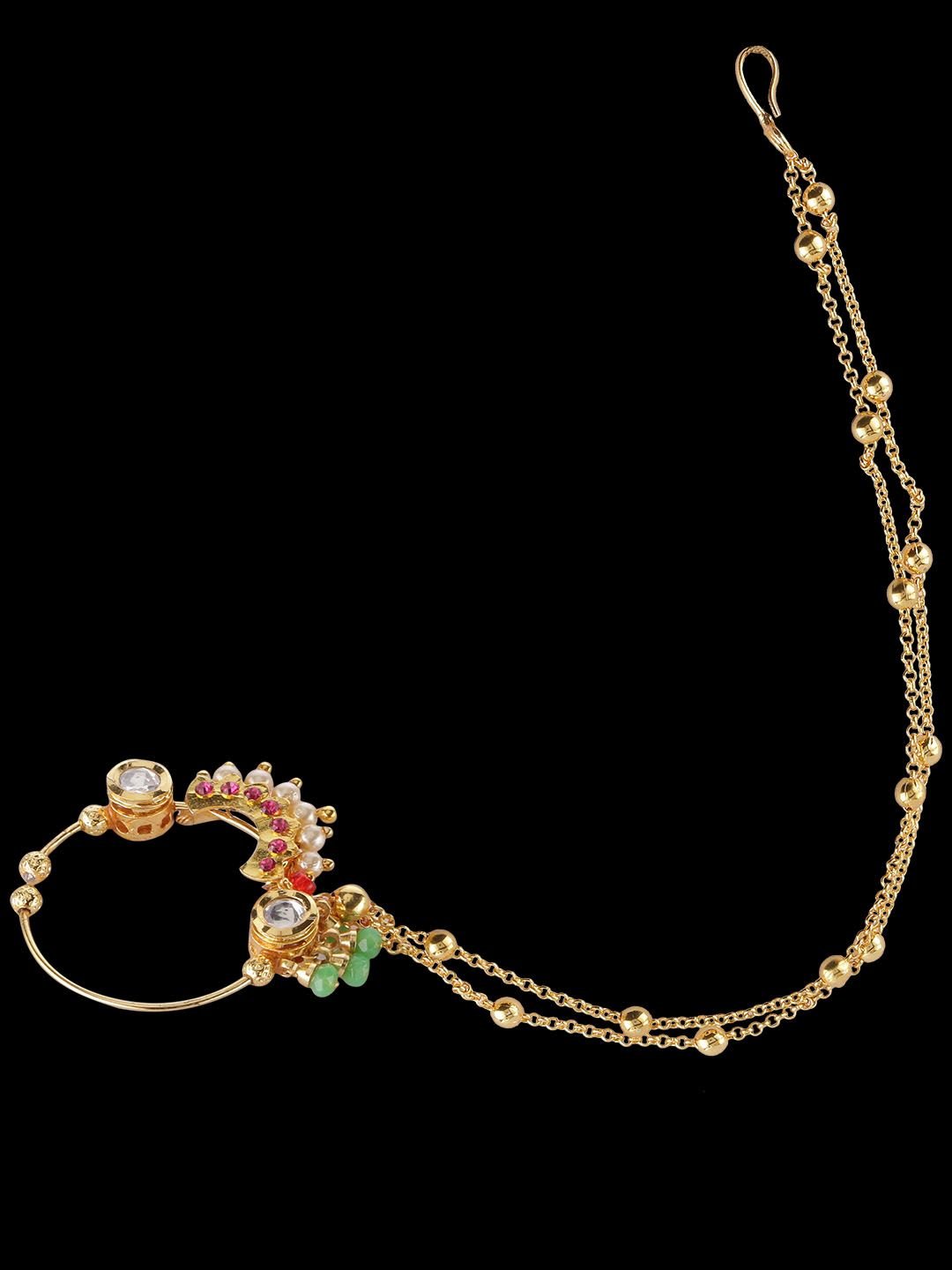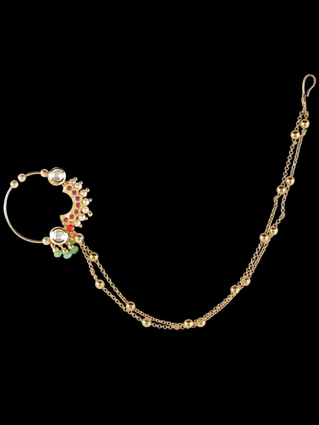 •Women’s Real Look, Micro Gold Polished Semi Precious Kundan/Polki & Pearl Nath/ Nose Pin/Nose Ring designed by Yosshita & Neha.