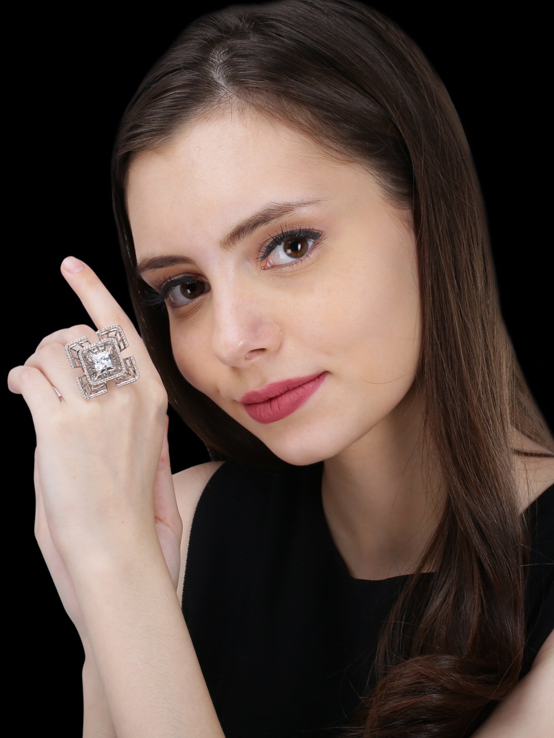 Flower Shaped Diamonds with Rose Polish and White Daimonds