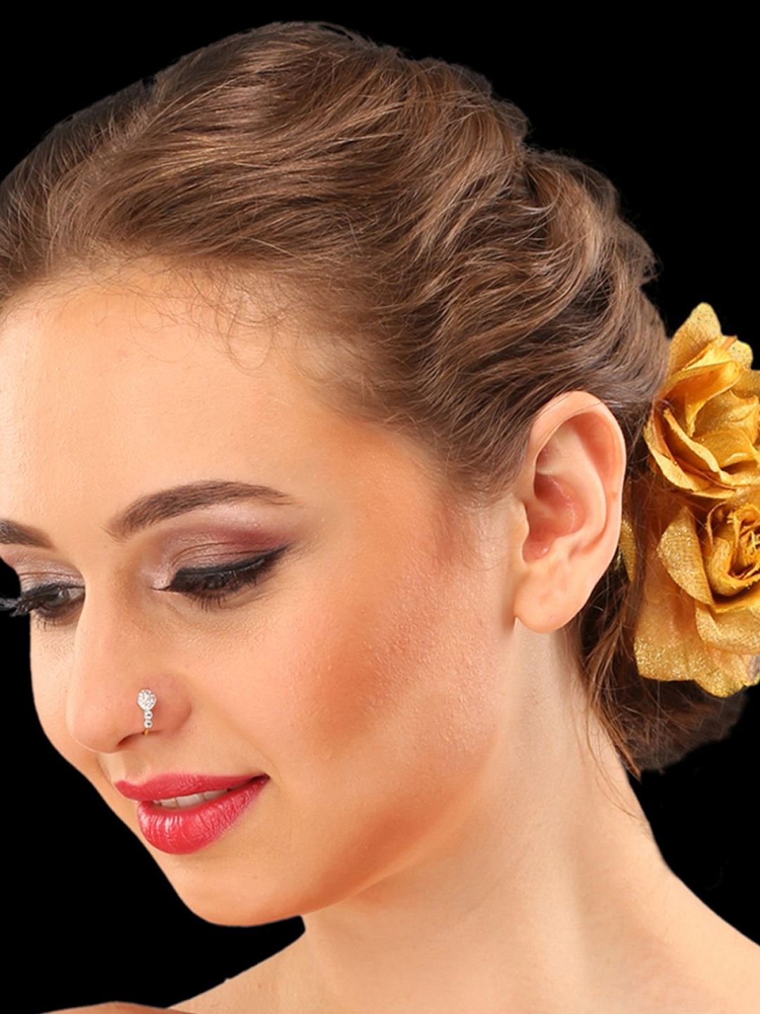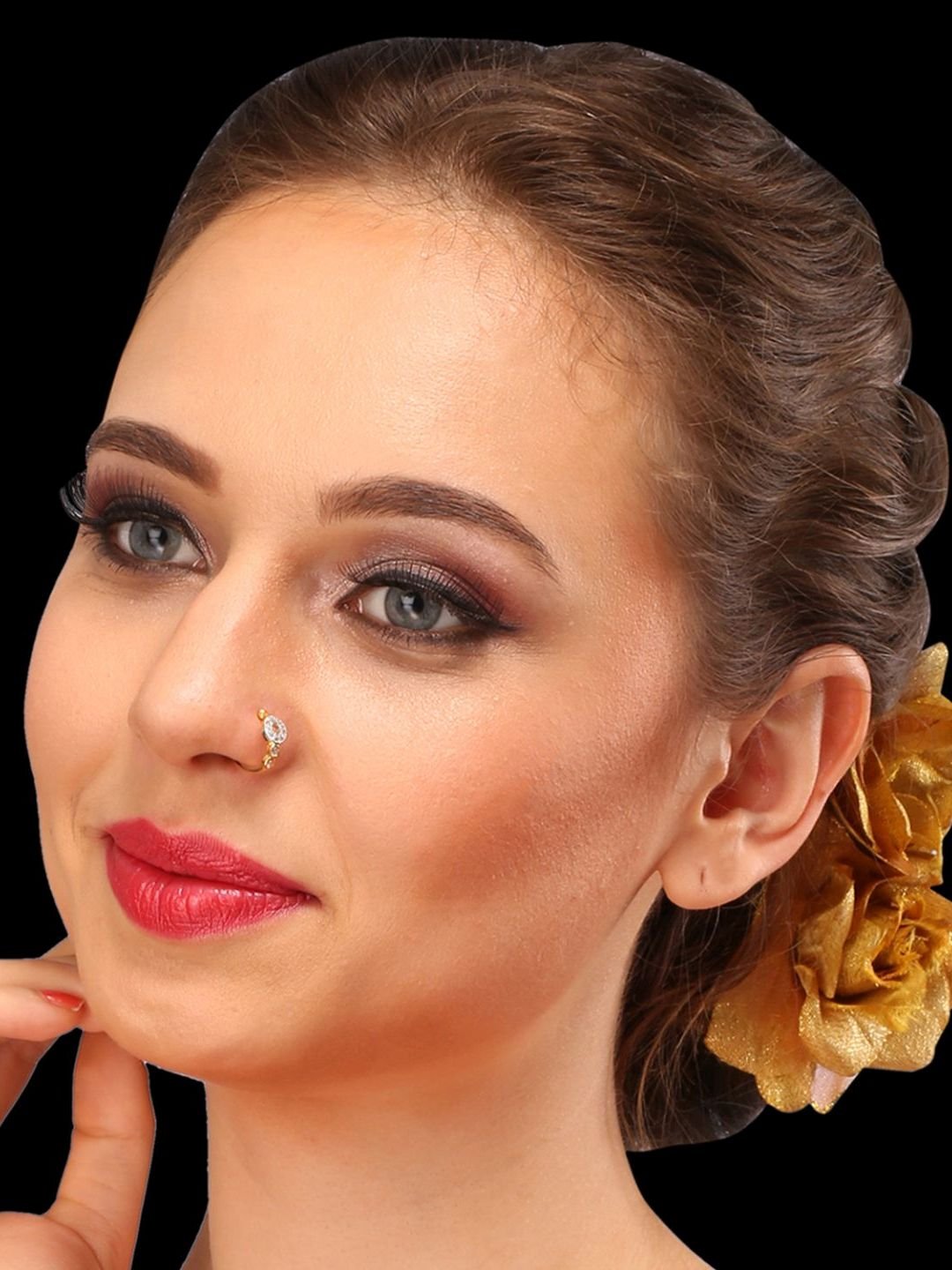 • womens Real Look, Traditional Micro Gold Polished Nath/Nose Ring/Nose Pin/Clip on Nath in American Diamond designed by Yosshita & Neha.