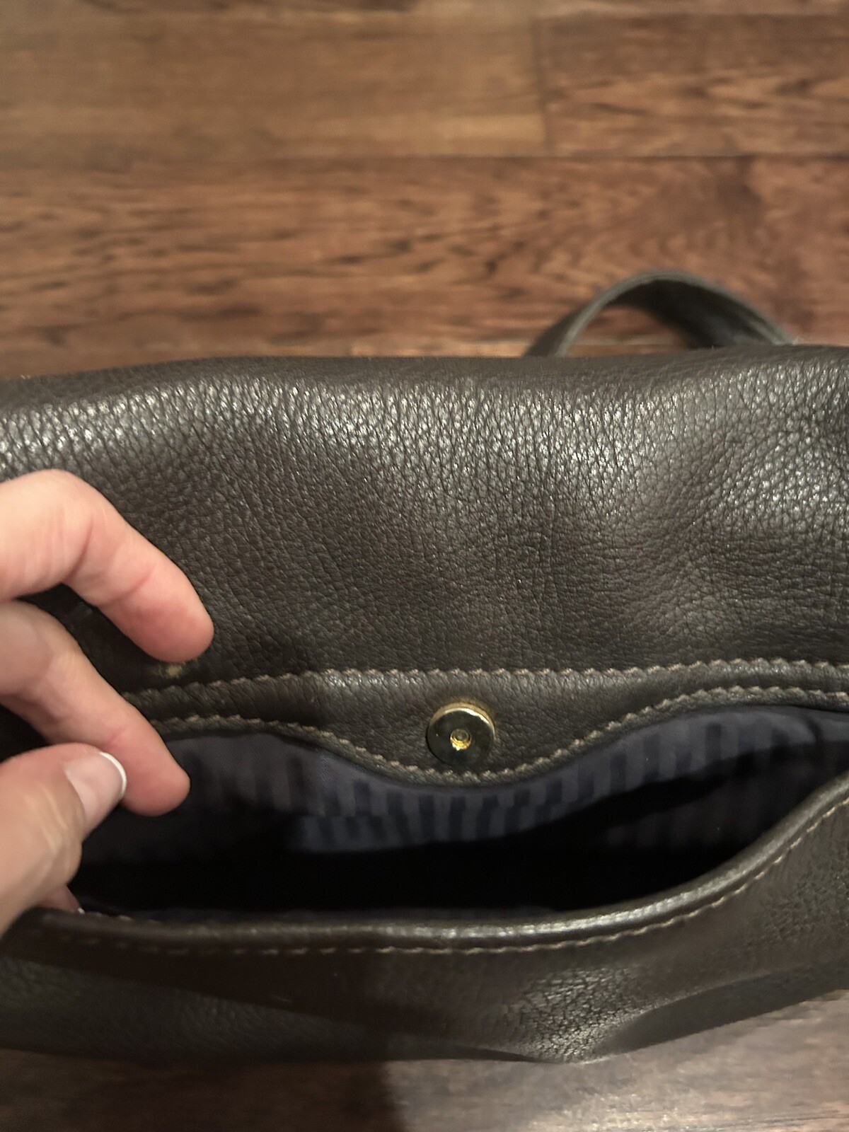 This vintage Coach brown pebbled leather flap messenger shoulder bag purse is listed as pre-owned in excellent used condition (EUC). It’s a practical shoulder bag style suitable for everyday carry, with a flap-front messenger look. Check the listing for details on measurements, interior layout, hardware, and any included accessories. Free shipping is included with your purchase; check the listing for shipping carrier, handling time, and any return details. Review photos and the item description carefully for wear, marks, or other signs of prior use.