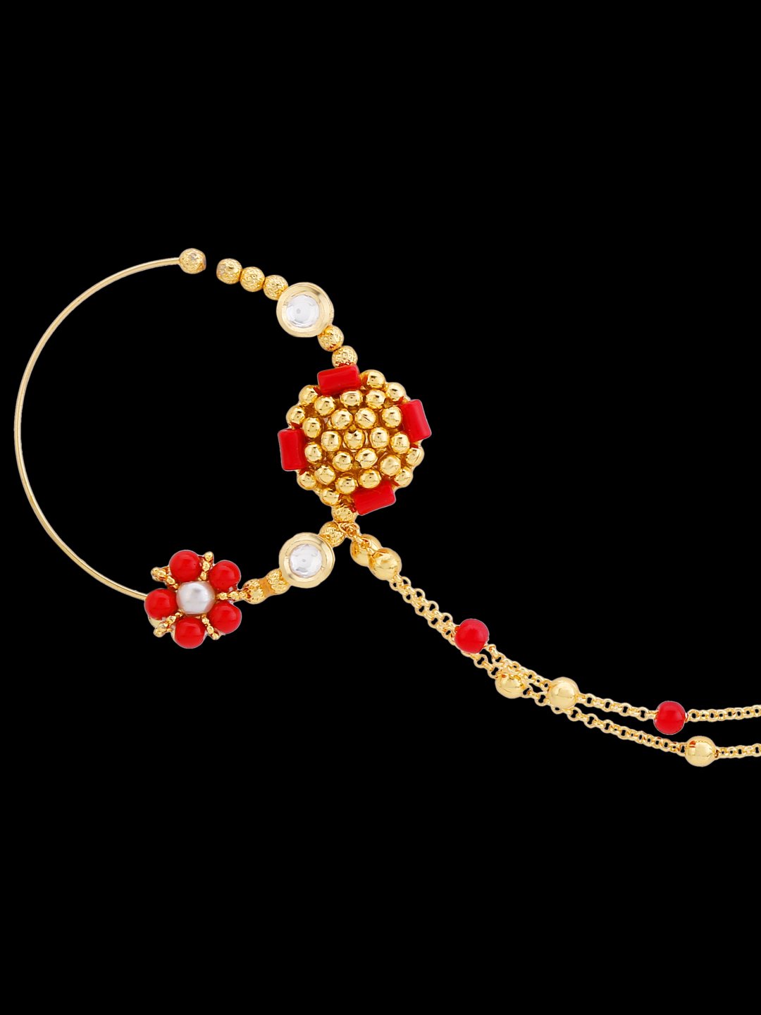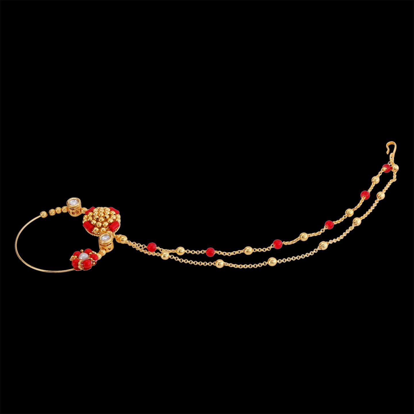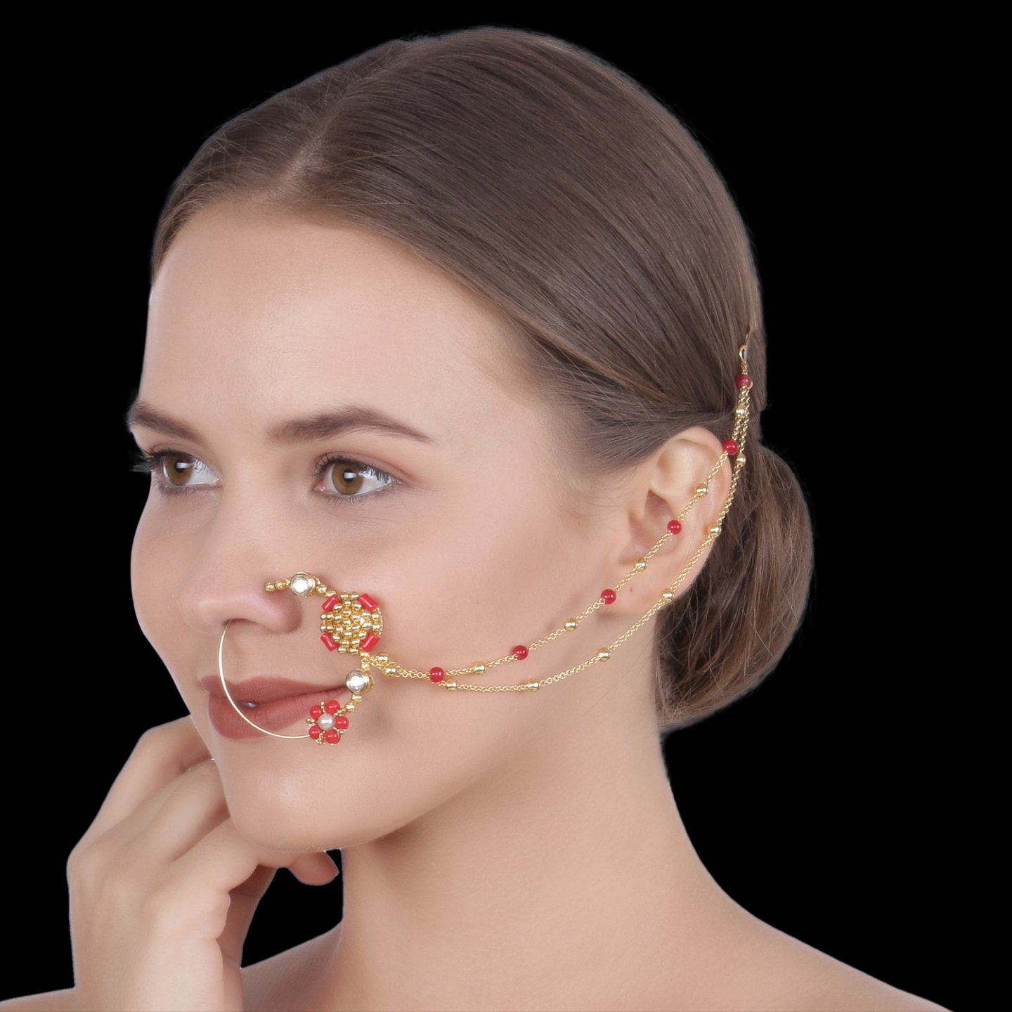 •Women’s Real Look, Micro Gold Polished Semi Precious Kundan & Pearl Nath/ Nose Pin/Nose Ring designed by Yosshita & Neha.