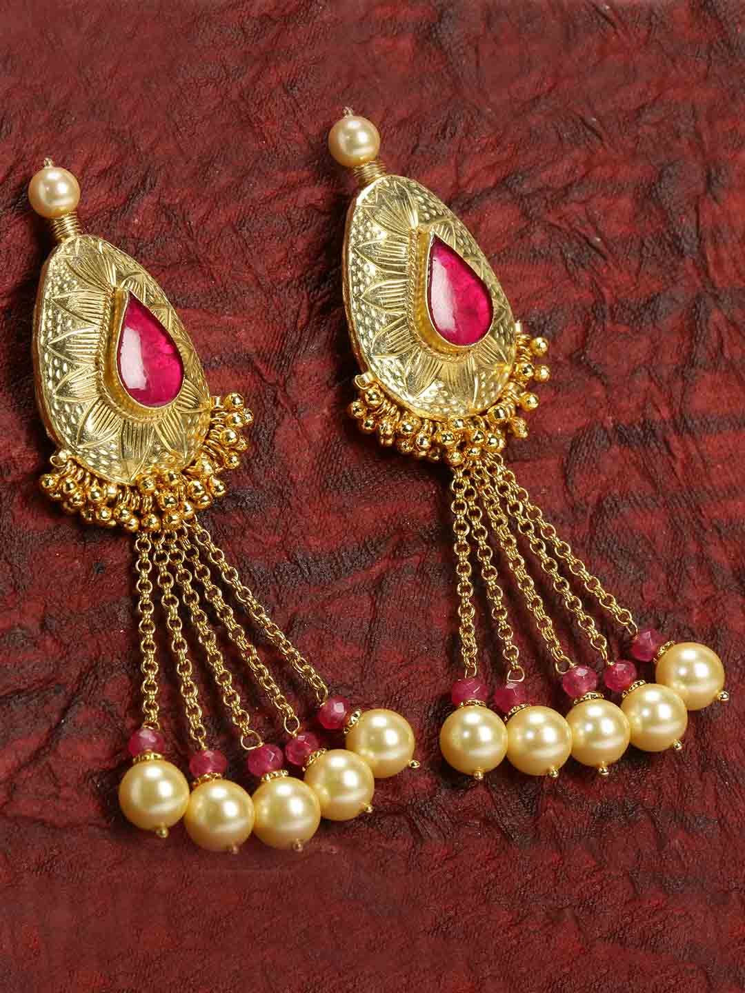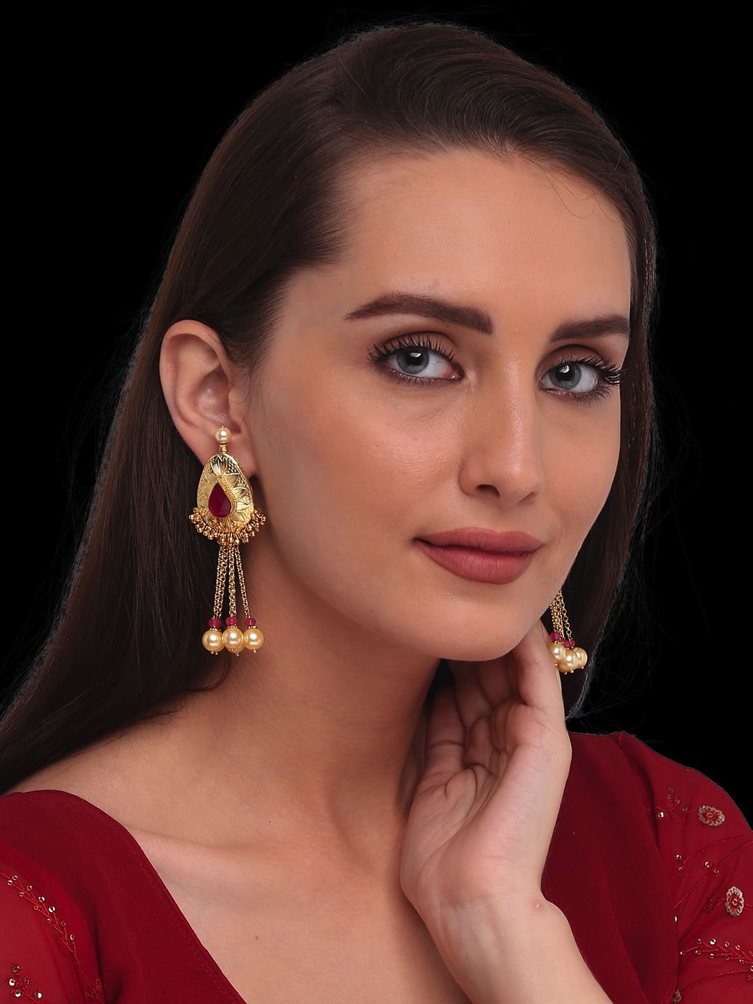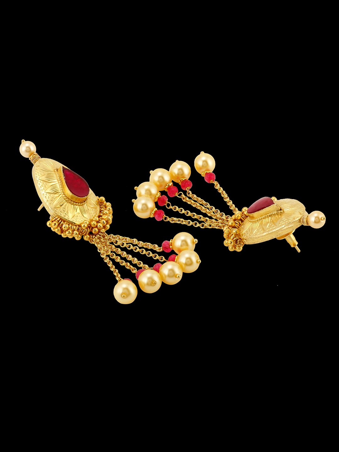 Traditional Micro Gold Polished Beads & Pearl Earrings for Women. EAR570ON